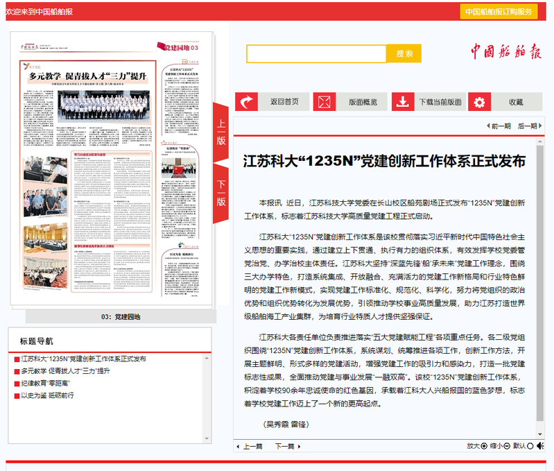 江蘇科大“1235N”黨建創(chuàng)新工作體系是該校貫徹落實習近平新時代中國特色社會主義思想的重要實踐,通過建立上下貫通、執(zhí)行有力的組織體系,有效發(fā)揮學校黨委管黨治黨、辦學治校主體責任。江蘇科大堅持“深藍先鋒‘船’承未來”黨建工作理念,圍繞三大辦學特色,打造系統(tǒng)集成、開放融合、充滿活力的黨建工作新格局和行業(yè)特色鮮明的黨建工作新模式,實現(xiàn)黨建工作標準化、規(guī)范化、科學化,努力將黨組織的政治優(yōu)勢和組織優(yōu)勢轉化為發(fā)展優(yōu)勢,引領推動學校事業(yè)高質量發(fā)展,助力江蘇打造世界級船舶海工產業(yè)集群,為培育行業(yè)特質人才提供堅強保證。