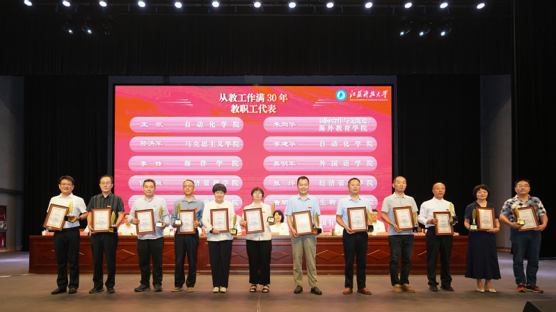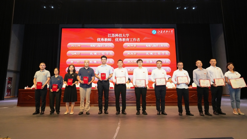 校黨委常委、副校長潘錦全宣讀表彰決定。大會對入圍全國高校黃大年式教師團隊的船舶與海工裝備先進設計制造教師團隊,新增國家級人才代表,第五屆全國高校教師教學創新大賽一等獎和江蘇省高校教師教學創新大賽獲獎者,省高?!扒嗨{工程”優秀教學團隊、省教學名師、校教學名師和提名者,校先進集體,鎮江市勞動模范、校優秀教師和優秀教育工作者,校優秀班主任,從教工作滿30年的教職工代表予以表彰。