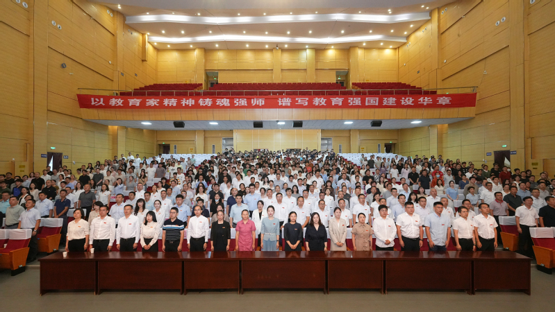 丹楓迎秋,碩果盈枝。9月10日,在第41個教師節來臨之際,學校在長山校區船苑劇場隆重召開慶祝2025年教師節暨表彰大會。校黨委書記楊建新,校長嵇春艷,全體校領導,黨委常委,機關及教輔部門負責人,各學院院長、書記,受表彰人員、教師代表、新教師、學生代表隆重集會,共同慶祝這個屬于廣大教育工作者的光榮節日。