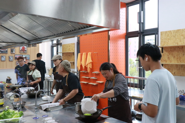 后勤管理處、后勤集團組織新生與家長在學校共享廚房親手制作“入學第一頓家宴”,并為當天報到的新生壽星準備了寓意萬事順遂的生日面,傳遞“學校即家”的溫暖理念。
