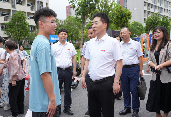 “歡迎來到江科大!”“家鄉是哪里的?路上還順利嗎?”“大家辛苦了!”“有多少新生報到啦?”迎新期間,校黨委書記楊建新、校長嵇春艷前往長山校區和夢溪校區新生宿舍、各學院迎新點、入學綠色通道等地,詳細了解新生及家長的報到感受和實際需求,并向參與迎新工作的師生志愿者表示慰問,要求各部門以高度的責任心,為新生提供周到細致的服務。