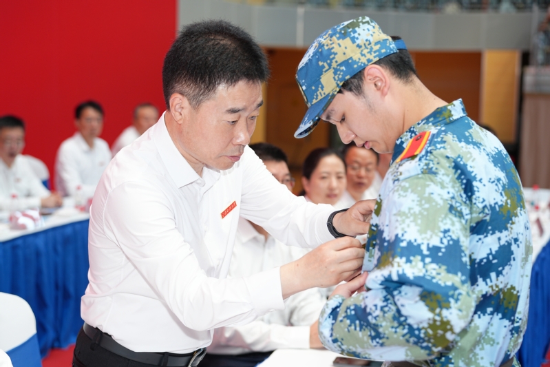 徽耀青春,志承船魂。楊建新為新生代表頒授校徽,祝愿他們承載學(xué)校的傳統(tǒng)與精神,在江科大揚(yáng)帆起航。