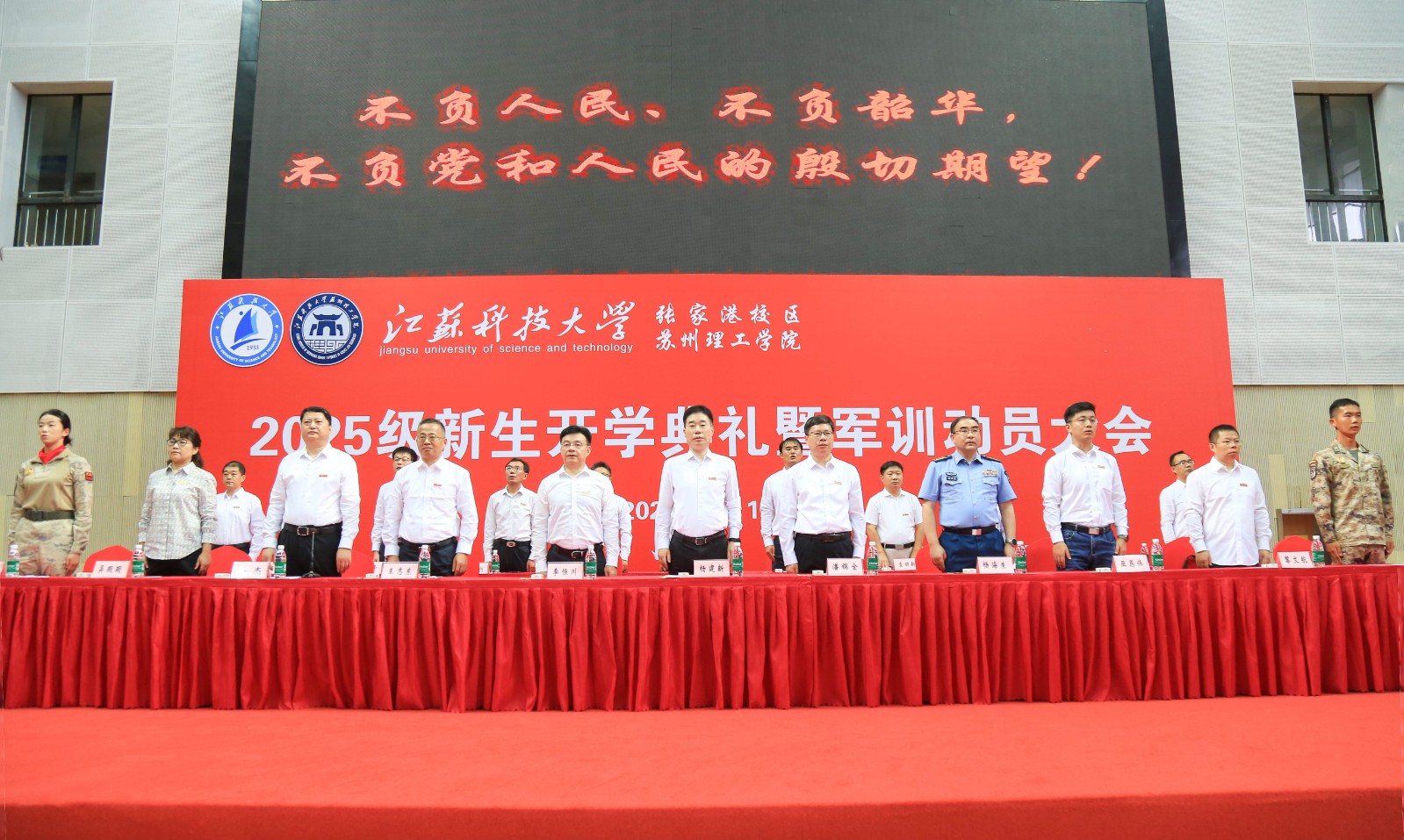9月17日,江蘇科技大學(xué)張家港校區(qū)、蘇州理工學(xué)院2025級(jí)新生開學(xué)典禮暨軍訓(xùn)動(dòng)員大會(huì)在張家港校區(qū)體育館隆重舉行。江蘇科技大學(xué)黨委書記楊建新,校黨委常委、副校長(zhǎng)潘錦全,校黨委常委、組織部部長(zhǎng)、張家港校區(qū)及蘇州理工學(xué)院黨委書記李恒川,校區(qū)、蘇理工領(lǐng)導(dǎo)班子,各部門和學(xué)院負(fù)責(zé)人及新生班導(dǎo)師等出席活動(dòng)。校區(qū)、蘇理工2025級(jí)全體新生參加典禮。大會(huì)由校區(qū)管委會(huì)副主任、蘇理工副院長(zhǎng)孫杰主持。