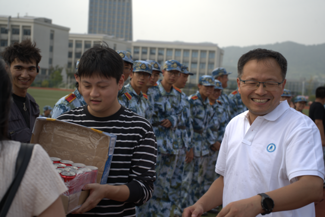 9月28日,陽光依舊熾熱,軍訓場上回蕩著新生們嘹亮的口號聲,校園里滿是蓬勃的青春活力。當日,自動化學院黨委副書記郭峰、副院長陳迅、團委書記萬纖及多位輔導員老師,帶著對新生的深切關懷來到訓練場,為同學們送去清涼的定制“小能量”,為大家驅散暑熱。