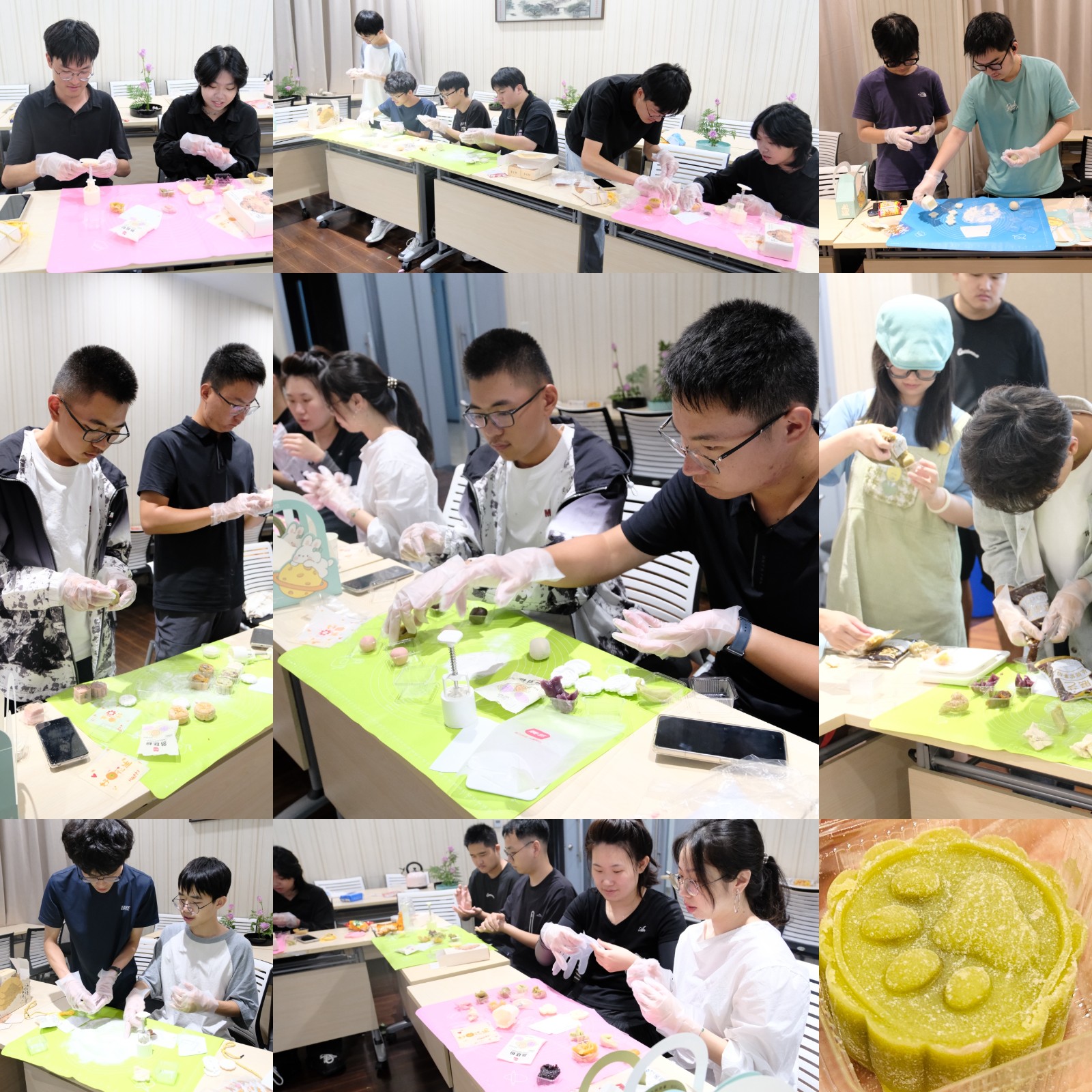 活動最后,迎來了最令人期待的手工制月餅環(huán)節(jié)。長桌之上,各色餡料與精巧模具整齊排布,琳瑯滿目的月餅材料瞬間勾起大家的創(chuàng)作熱情。大家紛紛戴上一次性手套,躍躍欲試。對許多同學(xué)來說,這是人生中第一次親手制作月餅,全新的體驗讓大家充滿新鮮感。這些帶著溫度的月餅,不僅凝聚著參與者的巧思,更承載著每個人對中秋佳節(jié)的熱愛,以及對生活最真摯的美好期許。