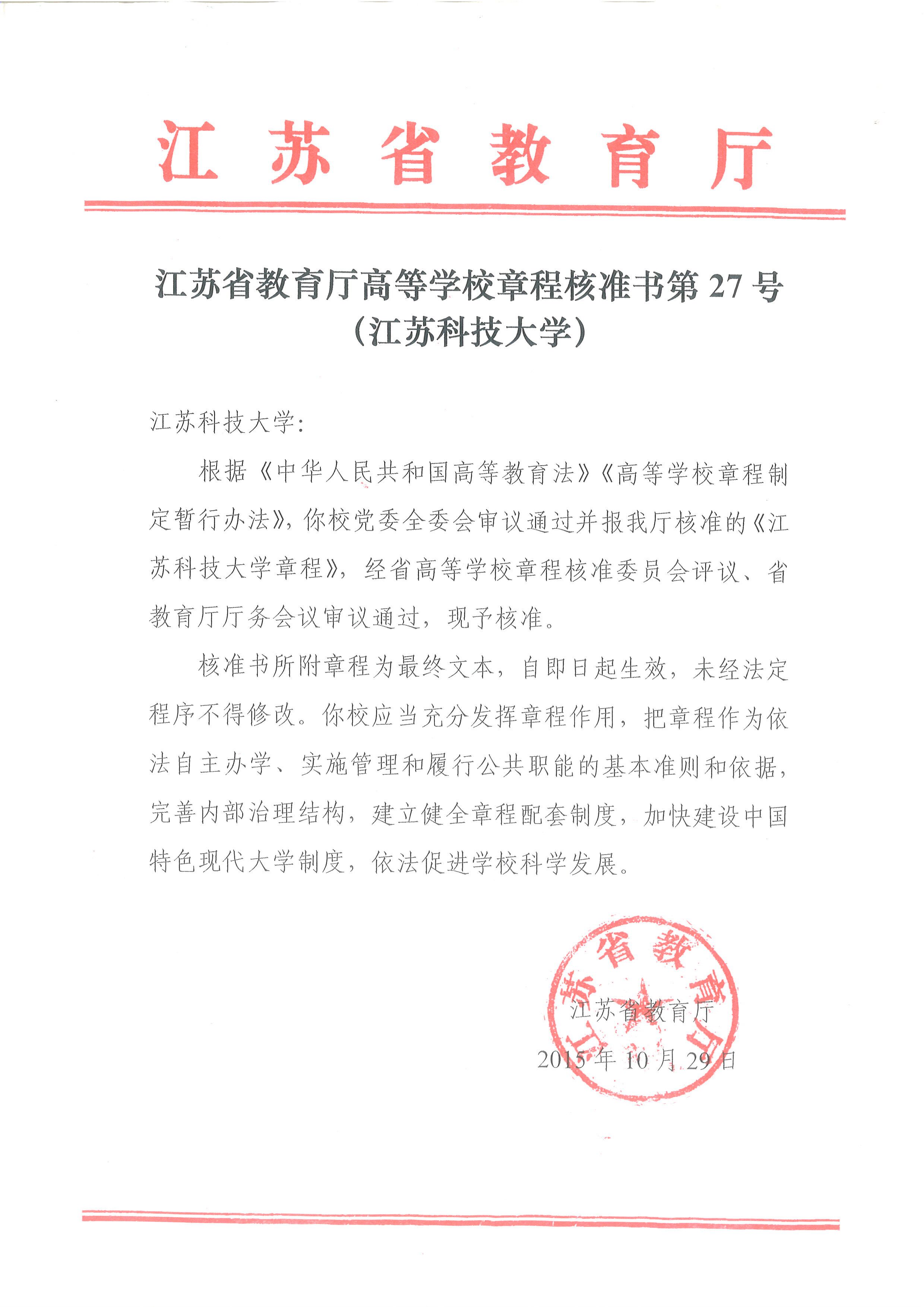 第一百零五條 本章程的制定與修改,須經(jīng)學(xué)校教職工代表大會(huì)審議、校長辦公會(huì)審核、校黨委會(huì)審定,由學(xué)校法定代表人簽發(fā),報(bào)江蘇省教育廳核準(zhǔn)后發(fā)布,并報(bào)教育部備案。