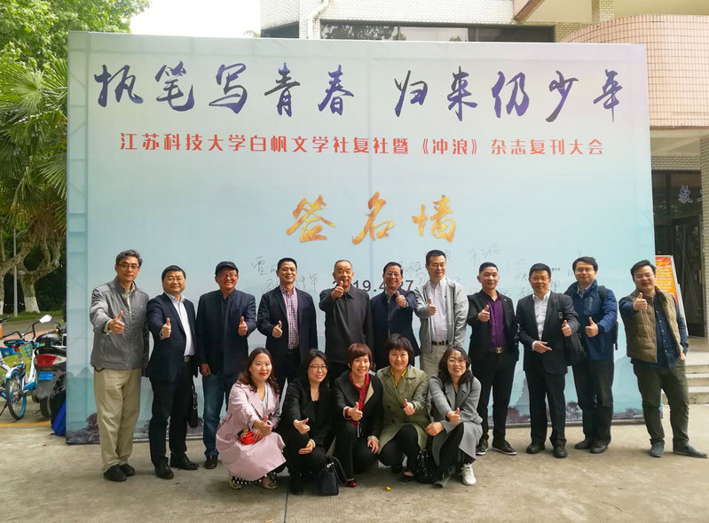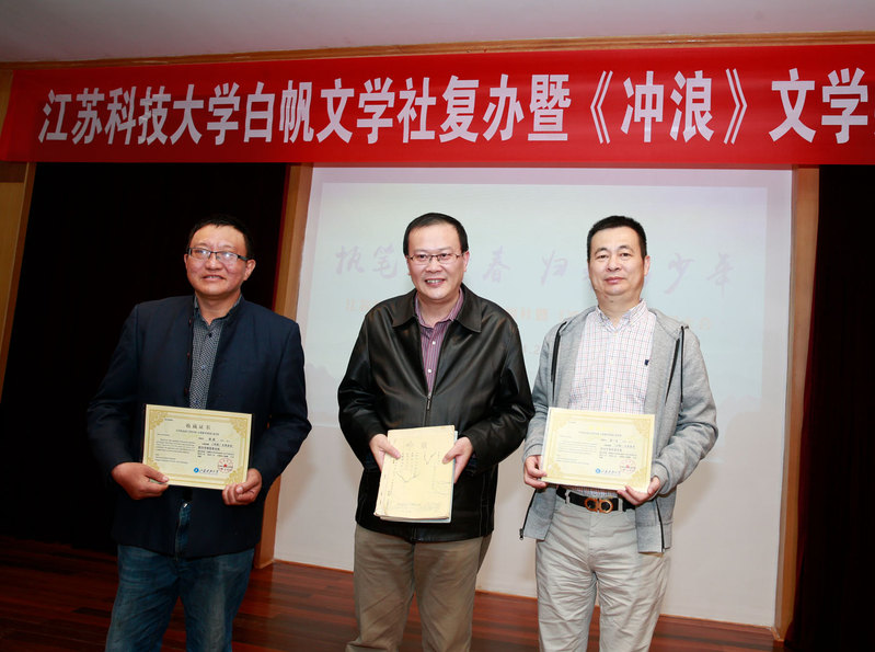 那時以理工科為主的院校很少有文學社。1984年,我和幾位熱愛文學的同學,在當時的團委書記李銀老師和學生會主席龍立同學的支持下,找到時任學生處處長沈貽森老師和校黨委副書記祝山老師,請求成立校文學社。他們開始有些顧慮,沒有馬上批復同意。因為白天要上課,我就晚上去領導們的家里做工作,承諾每期出版前所有文章都請宣傳部和團委領導審查,領導簽字同意了我們再刻蠟紙和油印,這才打消了領導們的顧慮,“船院文學社”終于在1984年金秋十月誕生了,時任校長肖流同志還親自為文學社期刊白帆雜志題詞。知道了我前面簡述的時代背景,大家才會知道當時領導們做這樣的決定是承擔了一定的政治風險的,所以在36年后的今天,我們應該再次向肖流校長、祝山書記、沈貽森書記和李銀等老師致敬!因為他們的擔當,我校第一個大學生社團成立了。