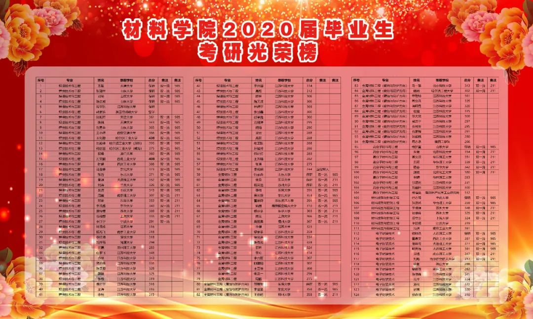 2020年是學(xué)院凝心聚力謀發(fā)展、披荊斬棘譜新篇的艱辛之年,學(xué)院焊接技術(shù)與工程專業(yè)獲批國家一流專業(yè)以及教育部新工科研究與實(shí)踐項(xiàng)目,金屬材料工程專業(yè)獲批省一流專業(yè),學(xué)院以第一單位獲得國家專利獎銀獎1項(xiàng),教育部科技進(jìn)步二等獎1項(xiàng),江蘇省科學(xué)技術(shù)獎二等獎1項(xiàng),聯(lián)合獲批省部級二等獎3項(xiàng)。學(xué)院牽頭并完成“冶金工程”和“材料與化工”兩個博士點(diǎn)的申報工作,完成“第五輪”學(xué)科評估材料學(xué)科申報工作,最新USNews材料科學(xué)學(xué)科排行榜列大陸高校第61,最新材料領(lǐng)域TOP1%論文數(shù)排名大陸高校第46。