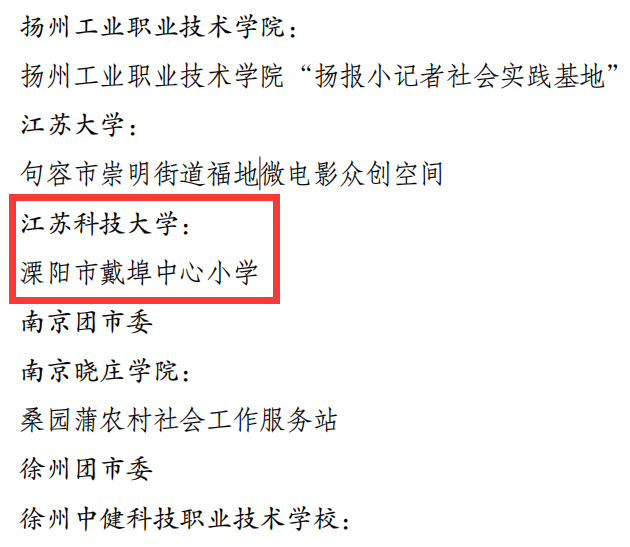 溧陽市戴埠中心小學榮獲“優(yōu)秀社會實踐基地”稱號