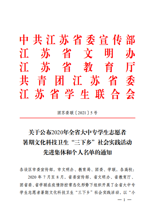 《“喜迎建黨一百周年”暑期社會實踐活動》《扶貧先扶志,泗陽助夢行》榮獲“優(yōu)秀調(diào)研報告”稱號