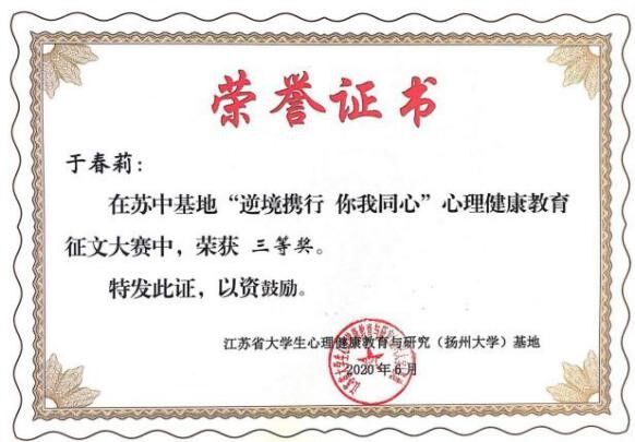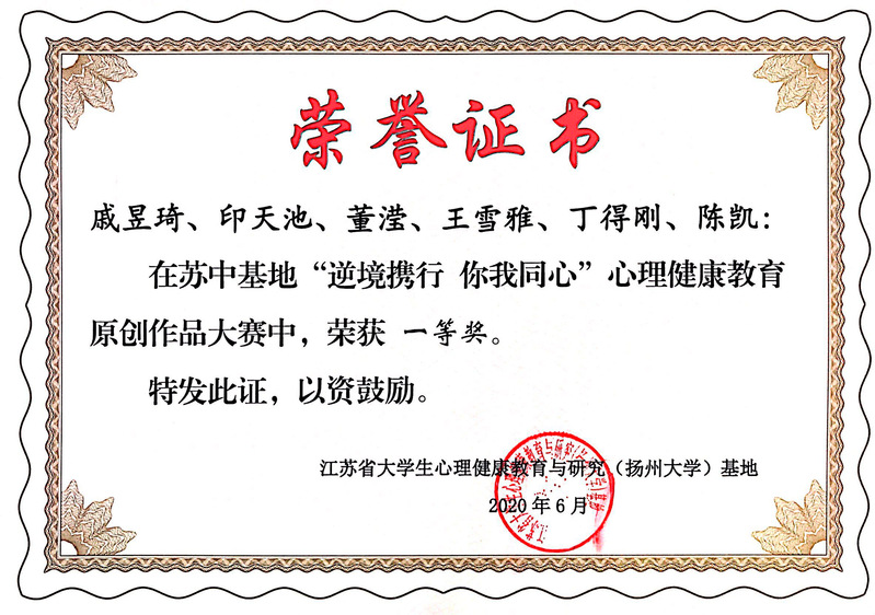 依托 “蠶桑減壓小屋” ,打造Stress SAP Station(3S)特色心理教育平臺,獲江蘇省 “逆境攜行 你我同心”心理健康教育原創(chuàng)作品大賽一等獎和三等獎各1項。