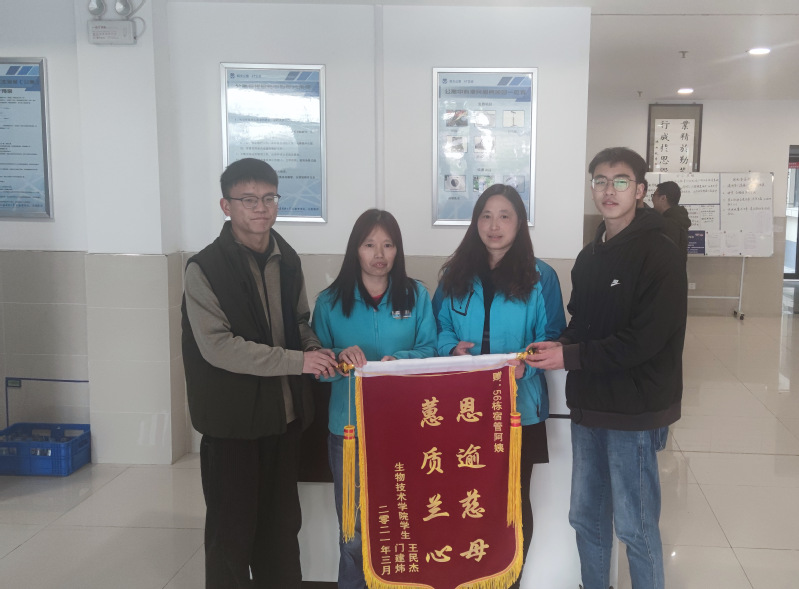 兩位同學都說,在大半年交往的這些日子里,知道了宿舍管理工作的艱辛,從宿管阿姨身上,看到了勤勤懇懇、兢兢業業、毫無怨言,更學到了許多做人的道理和處事的方法。陪同兩位同學贈送錦旗的生物技術學院黨委副書記錢平介紹,學院一直致力于培養學生樹立感恩、奉獻、責任意識,希望同學們能夠常懷感恩之心,感恩身邊事,感恩身邊人。