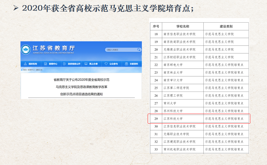 教學(xué)成果持續(xù)提升。思政課線上線下混合式教學(xué)形成特色,疫情期間制定了《思想政治理論課線上線下混合教學(xué)九條規(guī)范要求》和《線上線下混合教學(xué)“一室一品”特色方案》組織專題教學(xué);連線參加武漢一線抗疫的醫(yī)護(hù)人員為全體思政課教師講解《抗疫中的家國情懷》,老師們將一線抗疫醫(yī)護(hù)人員的樸實話語進(jìn)行理論升華,通過網(wǎng)絡(luò)課堂傳播抗疫精神,學(xué)習(xí)強(qiáng)國江蘇平臺以《給大學(xué)生在線講好戰(zhàn)“疫”中的“家國情懷”》大篇幅報道了這一做法;注重成果提升,與鎮(zhèn)江市文廣集團(tuán)合作拍攝三集緊扣現(xiàn)實的抗疫思政課,以《精神的豐碑》為主題拍攝的十集微課程獲評江蘇省微課程一等獎,目前學(xué)習(xí)強(qiáng)國江蘇平臺點(diǎn)擊率逾10萬。