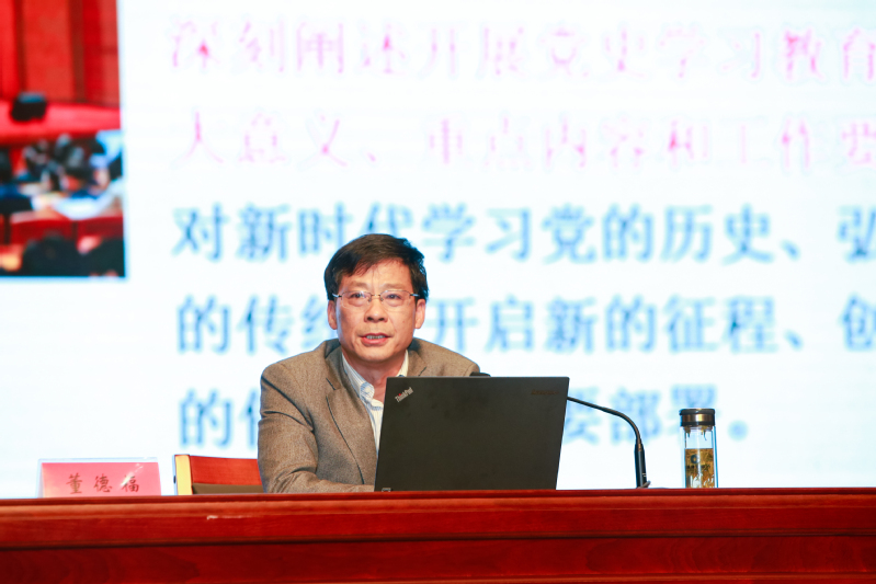 董德福教授以《從百年黨史中汲取前行的智慧和力量》為題進行宣講。報告緊密結合習近平總書記在黨史學習教育動員大會上的講話內容,從“學史明理,明晰歷史必然;學史增信,增強歷史自信;學史崇德,賡續精神血脈;學史力行,踐行初心使命;以正確的黨史觀學習黨史”等五個層面進行詳細講解。通過鮮活的案例闡述了中國共產黨為什么“能”、馬克思主義為什么“行”、中國特色社會主義為什么“好”。深入解讀中國共產黨百年奮斗史的寶貴經驗和讀懂百年大黨的成功“密碼”。董德福教授強調要把學習黨史同總結經驗、觀照現實、推動工作結合起來,同解決實際問題結合起來。通過原原本本學、開展實地研學、為師生辦實事等方式,確保黨史學習教育取得實效。宣講報告視野開闊、深入淺出,讓廣大師生深化對習近平總書記關于黨的歷史重要論述的理解,進一步領會黨的百年奮斗歷史、深入開展黨史學習教育具有重要指導意義和借鑒意義。