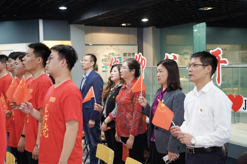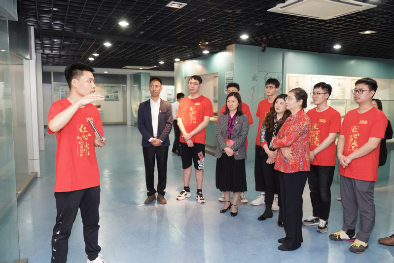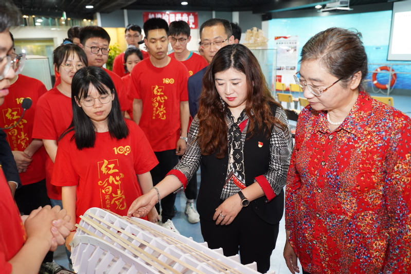 省委教育工委第四指導組組長吳建華、聯絡員蔣慧,校黨委常委、宣傳部部長周春燕,船海學院黨委書記張健等還與景榮春黨支部的師生一起在大學生的手語帶領下共唱國歌,以這種特殊的方式在船模館里學黨史,迎接中國共產黨成立100周年。