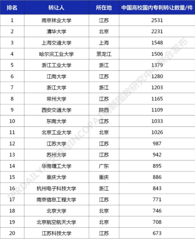 近日,知識產(chǎn)權(quán)產(chǎn)業(yè)媒體IPRdaily與incoPat創(chuàng)新指數(shù)研究中心聯(lián)合發(fā)布“中國高校專利轉(zhuǎn)讓排行榜(TOP100)”。榜單對截至2021年3月31日,中國高校在國家知識產(chǎn)權(quán)局登記生效的專利申請權(quán)/專利權(quán)轉(zhuǎn)讓數(shù)量進行統(tǒng)計排名,榜單顯示,我校專利轉(zhuǎn)讓累計673件,位列全國高校第20名(2020年第23名),江蘇高校第8名。