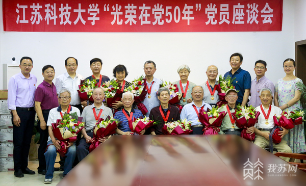 6月9日,江蘇科技大學離退休黨工委舉行“永遠跟黨走——光榮在黨50年”老黨員座談會。學校黨委副書記許俊華給12名老黨員代表頒發了“光榮在黨50年”的紀念章。