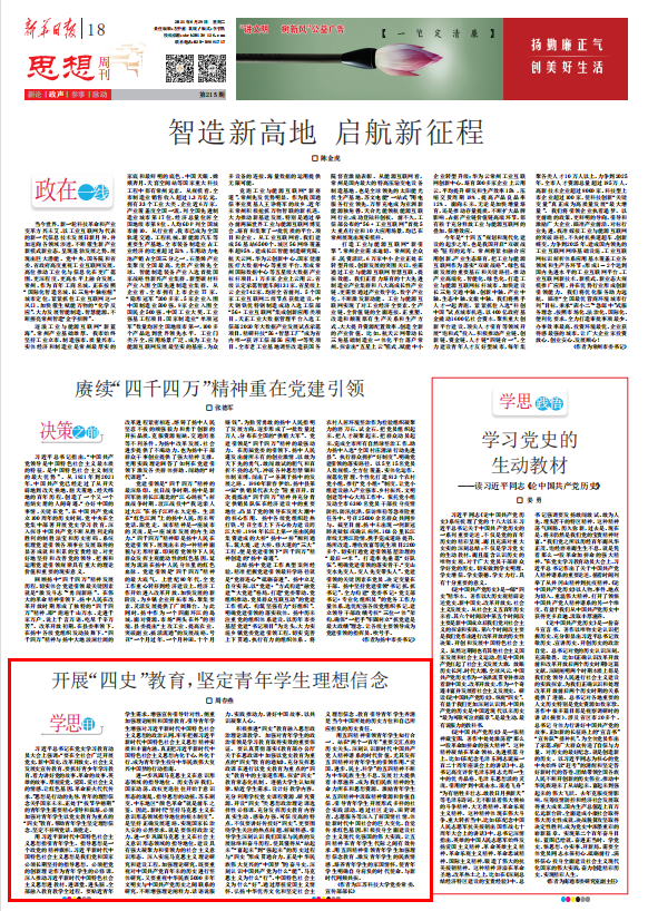 新華日報:開展“四史”教育,堅定青年學(xué)生理想信念