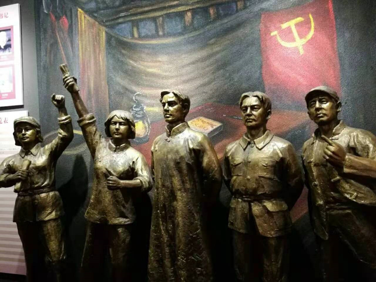 長沙地區第一個農村黨支部舊址紀念館:五位革命先烈銅像(從左至右:鄭家奕、楊開慧、李維漢、黃則民、余西邁)