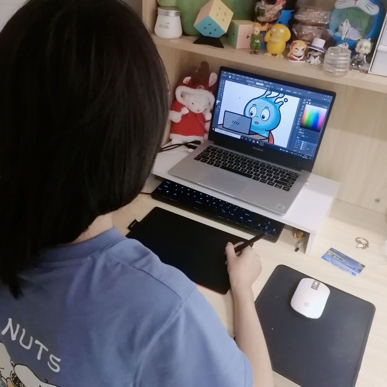 余鑫妍同學是能源與動力學院建筑環境與能源應用工程專業的大二學生,同時也是大學生通訊社視覺設計部的一員。繁忙的功課之余,這個單純可愛的女孩喜歡通過畫畫來放松自我。令人驚訝的是,余鑫妍并沒有專門學過畫畫,畫畫全是靠自學的,她說,“我也不知道從什么時候就開始畫畫了,就是看動漫有時候看到喜歡的角色就照著畫一下,主要喜歡畫動漫人物。”