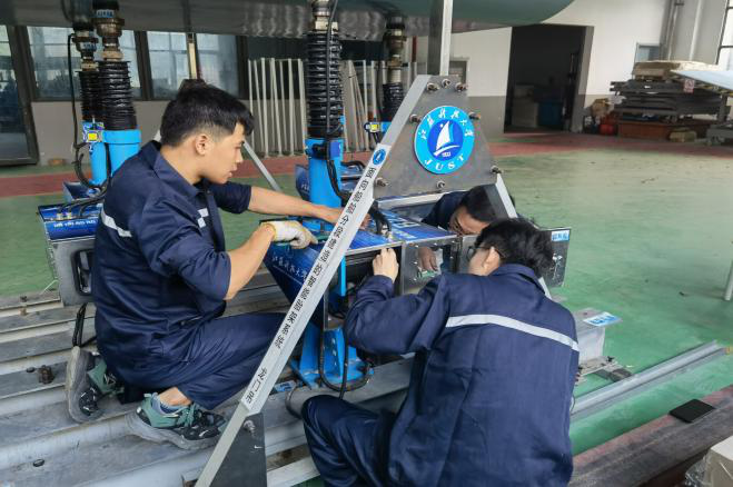 胎架是船舶分段建造過(guò)程中必不可少的工藝裝備,其排列組合構(gòu)成了船體分段建造的工作臺(tái)?!扒嫣旒芎!眻F(tuán)隊(duì)為研發(fā)智能胎架系統(tǒng),先后19次調(diào)研了國(guó)內(nèi)多家船舶企業(yè),擁有100多種船型的100多萬(wàn)條設(shè)計(jì)及建造工藝數(shù)據(jù)庫(kù),為胎架最優(yōu)個(gè)數(shù)計(jì)算及智能化布置提供基礎(chǔ)。最終,團(tuán)隊(duì)成員研制出融合智能感知和自動(dòng)控制技術(shù)為一體,具有支撐點(diǎn)位自適應(yīng)計(jì)算和布置、支撐高度智能決策、建造過(guò)程智能監(jiān)控功能的國(guó)內(nèi)首款智能胎架系統(tǒng)。