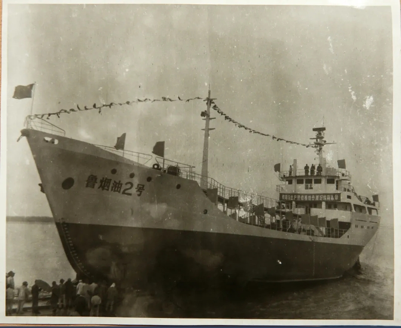 1978年鎮(zhèn)江船校象山船廠生產(chǎn)出魯煙2號(hào)下水剪彩