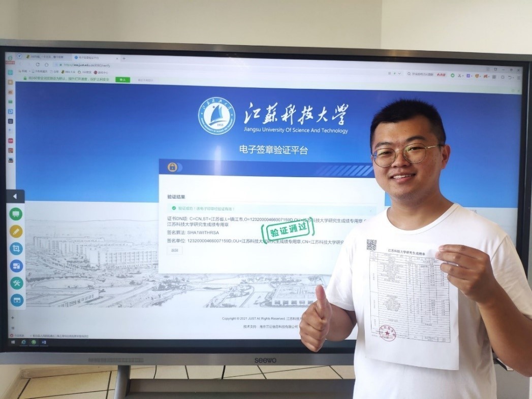 “原來開成績證明需要線下辦理,現在只需要有一臺電腦,鼠標點一點,動動手指,足不出戶,蓋好章的成績證明就可以下載打印了,真是太方便了!”江科大計算機學院的胡勇同學在開具成績證明時連聲稱贊。