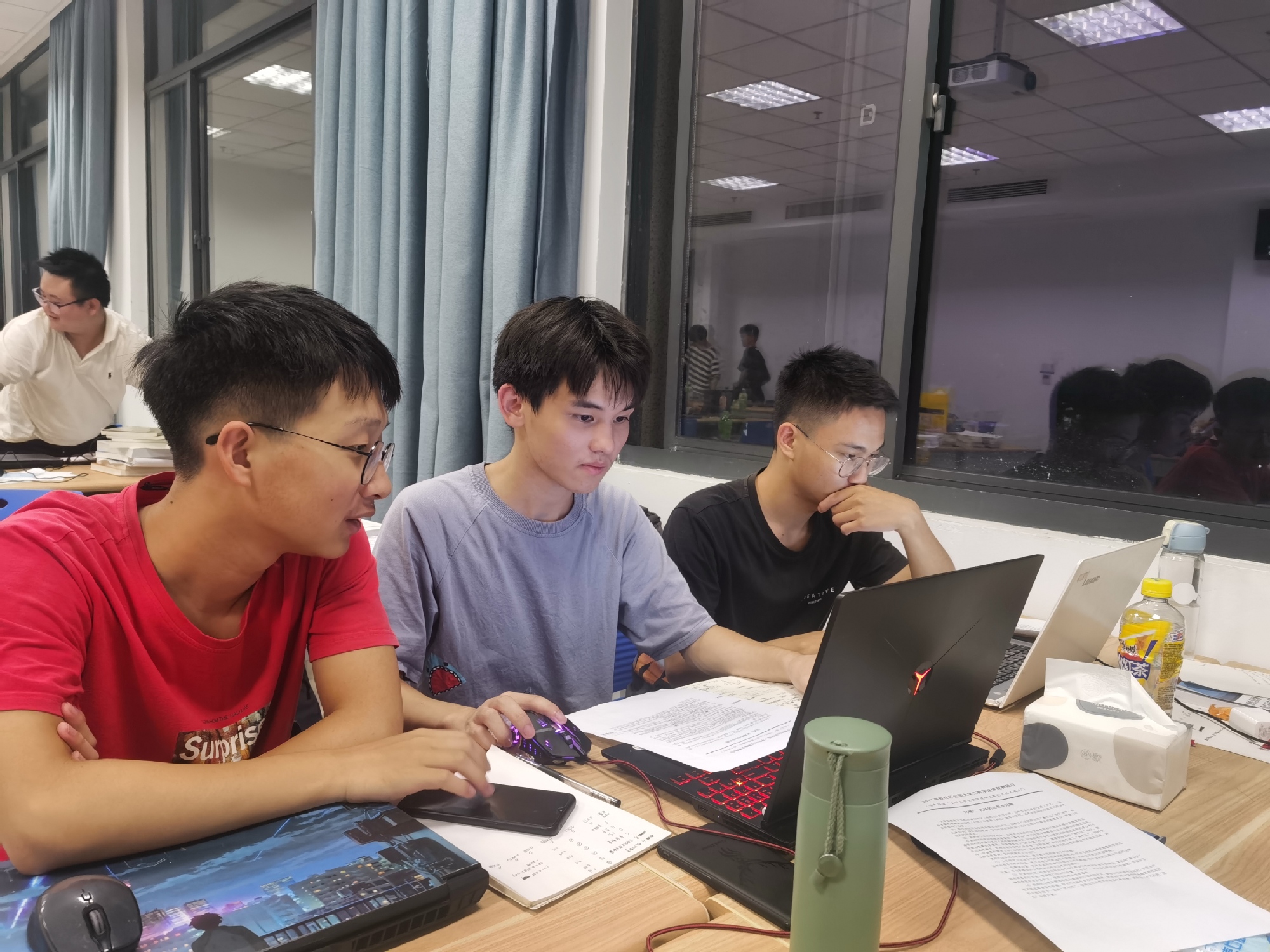 為了制定訓練計劃,伊士超整個暑期都沒有回過家。“要選定合適的題目來幫助學生不斷突破,是一個挑戰。”伊士超回憶道。備賽過程時間緊迫,不僅需要查資料收集信息,還需要當面請教一些知名學者。每天至少要接近九點才能結束,長時間高負荷的訓練讓師生都感覺到疲憊,“當看到比賽結果的那一刻,真的不是用筆墨能形容的快樂。”伊士超團隊用圖片記錄下那段不斷突破自我的時光。