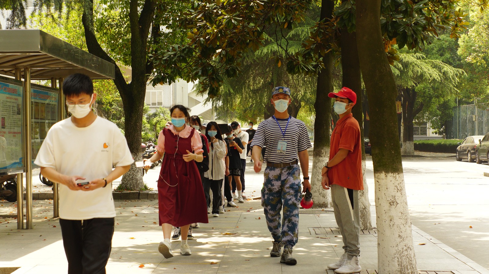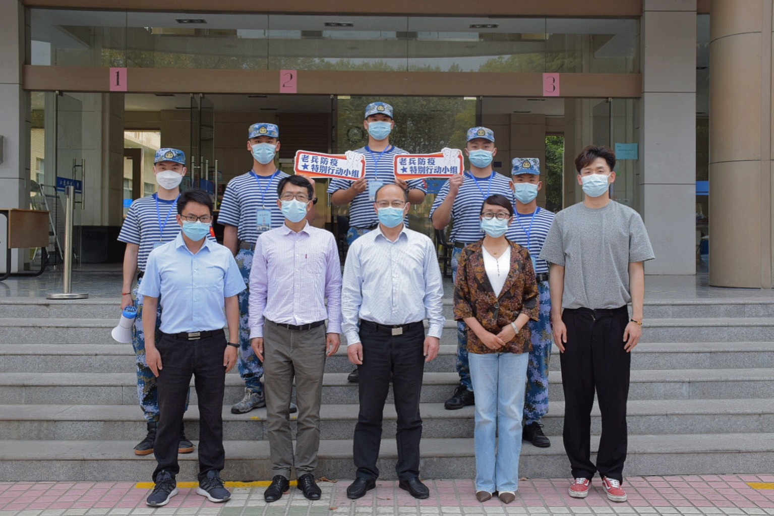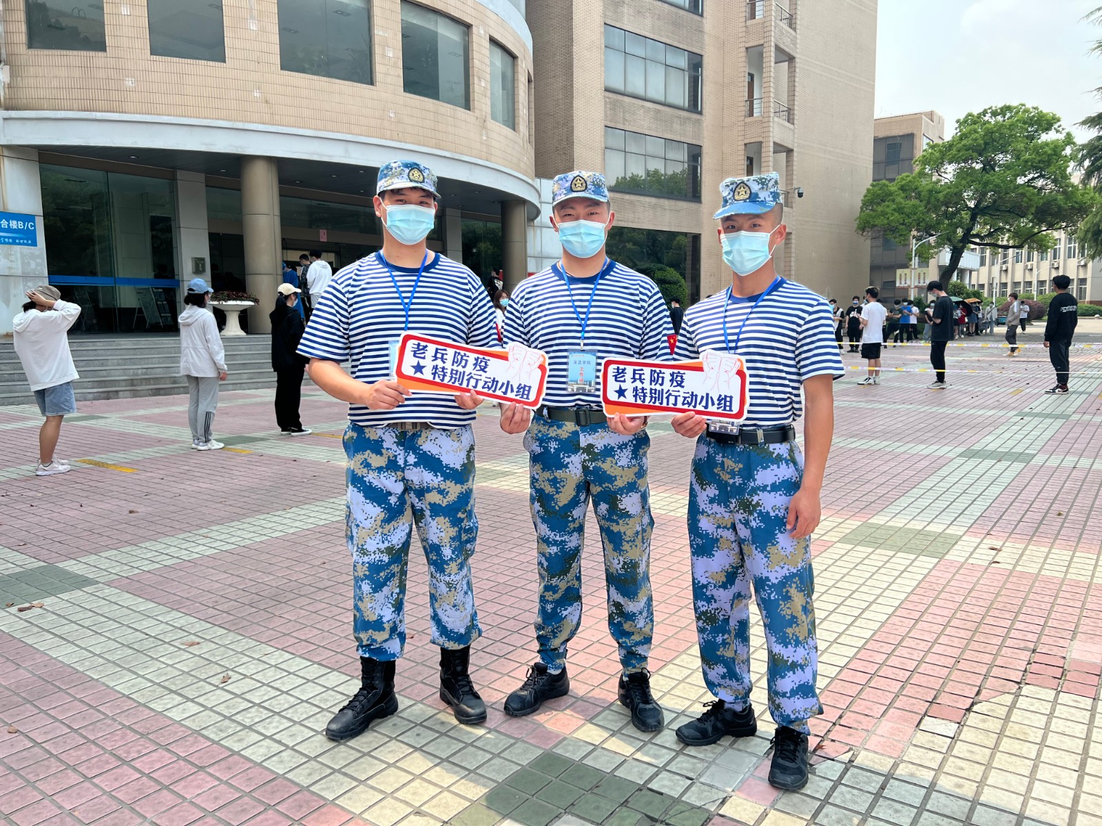 滿頭白發(fā)的老奶奶,在身著迷彩軍服同學(xué)緊緊攙扶下走向核酸檢測點;男教工騎行中突然摔倒落地,現(xiàn)場執(zhí)守的“老兵防疫特別行動小組”同學(xué)眼疾手快沖過去救助;風(fēng)雨中、驕陽下,迷彩藍迷彩綠一身挺拔,口令干脆、指揮若定……連日來,一張張溫馨流動的照片在江科大師生微信朋友圈刷屏,搶人眼球的迷彩身影正氣凜然青春勃發(fā)。他們是江蘇科技大學(xué)首批9名退役士兵防疫志愿服務(wù)小分隊成員,他們的群名片是“老兵防疫特別行動小組”,從退役“老兵”到抗疫新兵,齊心協(xié)力守護校園和平安寧。