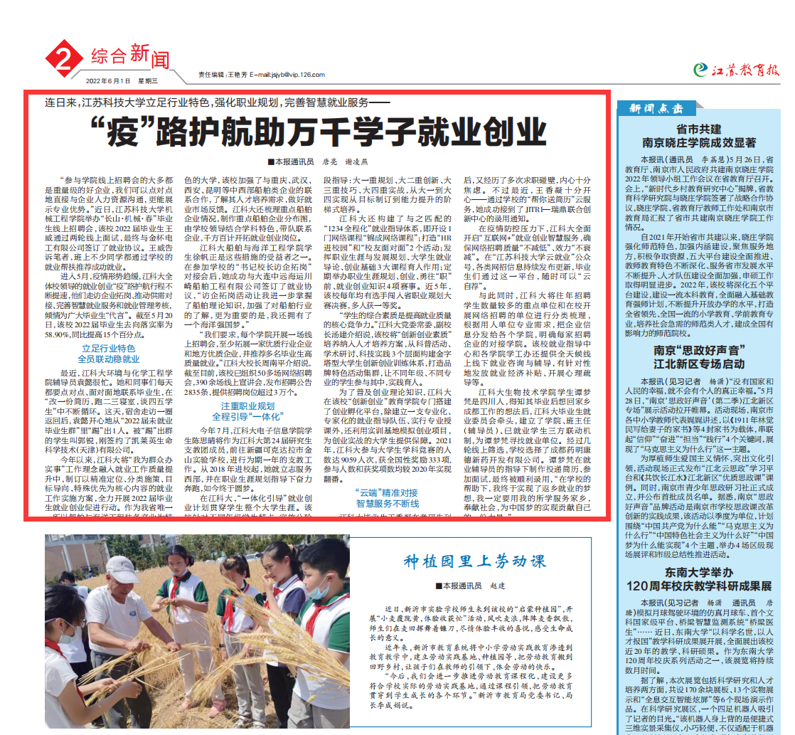 江蘇教育報 2版頭條 2022年06月01日 http://epaper.jsenews.com/Article/index/aid/6818300.html