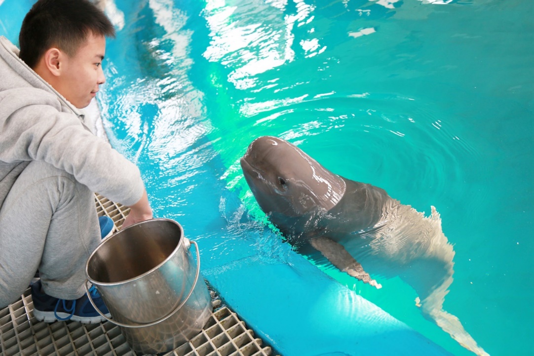 圖/葉雷凱和世界上第一頭人工環境下出生的長江江豚“淘淘”