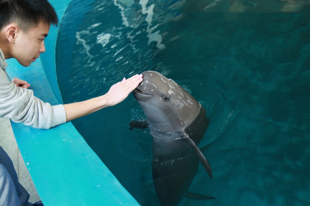 本科4年,他在中科院水生生物研究所參與了長江江豚人工飼養、科學實驗、野外科考等,累計達1000余小時,周末、寒暑假等課余時間幾乎都在陪伴江豚中度過——親眼目睹江豚寶寶的出生,為世界上第一頭在人工飼養環境下出生的長江江豚“淘淘”過生日……“我陪伴它們一起成長,和它們一起度過了最美好的大學時光,結下了終身的情誼,更有幸見證了我國長江江豚保護與研究事業的發展,這也讓我更加堅定了保護長江江豚的決心”。