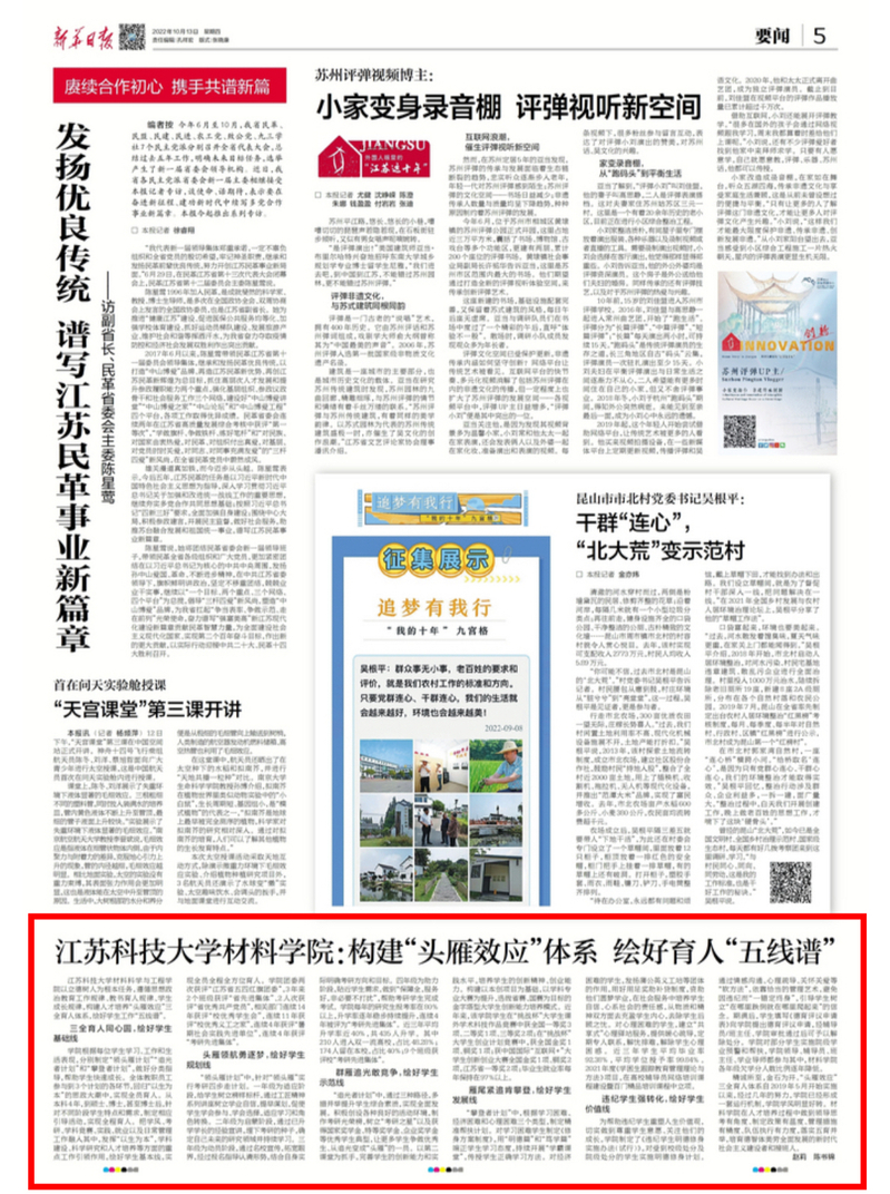 江蘇科技大學材料科學與工程學院以立德樹人為根本任務,遵循思想政治教育工作規律、教書育人規律、學生成長規律,構建人才培養“頭雁效應”三全育人體系,繪好學生工作“五線譜”