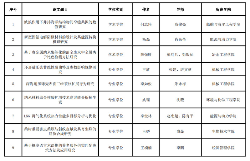 2022年12月26日,省學(xué)位委員會(huì)、省教育廳公布2022年江蘇省優(yōu)秀博士碩士學(xué)位論文評(píng)選結(jié)果,我校9篇學(xué)位論文獲評(píng)省優(yōu)秀碩士學(xué)位論文,其中優(yōu)秀學(xué)術(shù)學(xué)位碩士學(xué)位論文3篇,優(yōu)秀專(zhuān)業(yè)學(xué)位碩士學(xué)位論文6篇。