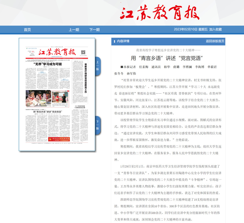 江蘇教育報2023年2月10日頭版http://epaper.jsenews.com/Article/index/aid/7437099.html