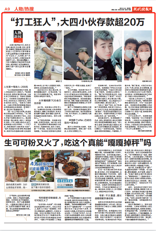 現代快報訊(通訊員 王召征 謝凌燕 記者 曹德偉)從高二開始打工,發過傳單,做過外賣小哥、保安、服務員,也曾自己創業做過培訓機構教官 …… 江蘇科技大學環境與化學工程學院小伙楊寅峰可謂 打工狂人 ,幾年間,他做過幾十份零工,大學時又毅然選擇入伍。相比其他同齡人,今年大四的他還攢下了二十余萬存款。就在最近,他又應聘成功,即將入職一家央企從事安全管理崗位。