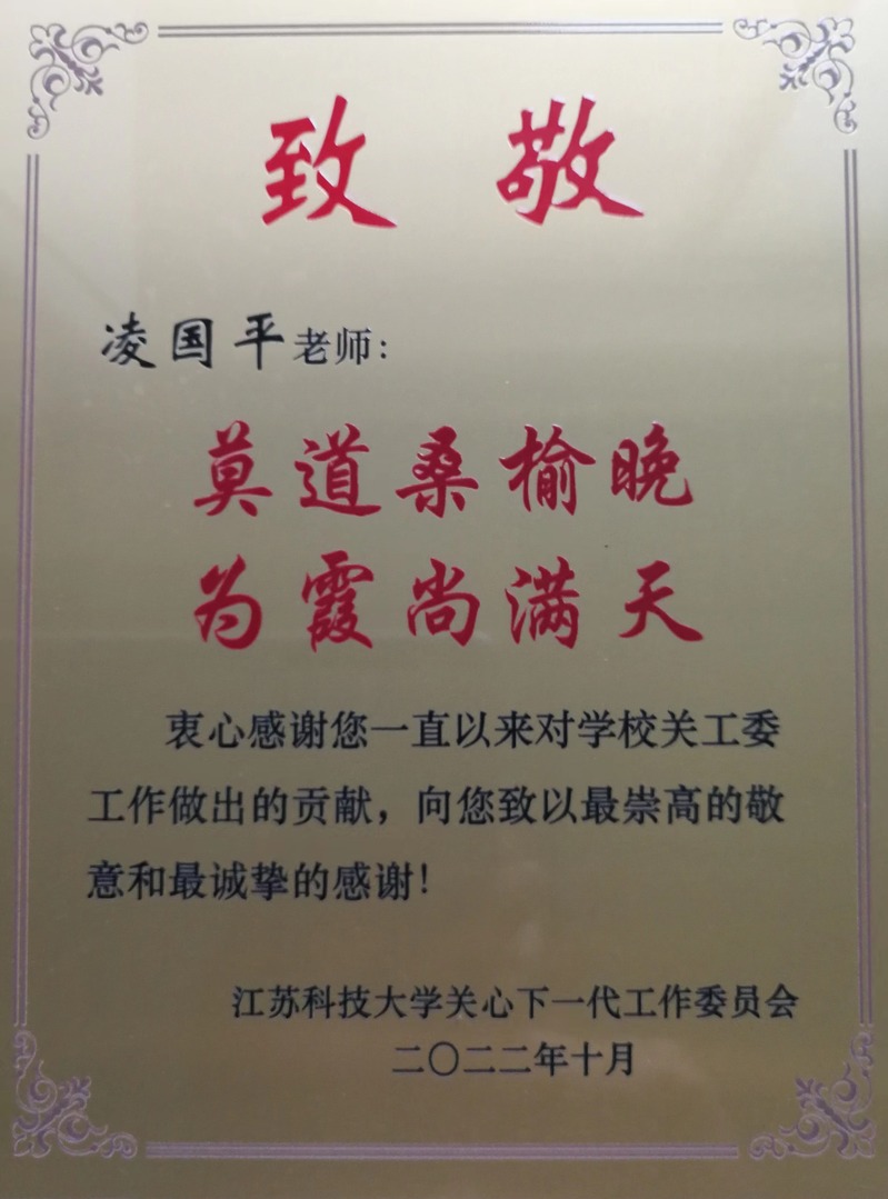 2008—2022年,我受聘為江科大關(guān)工委“成長驛站”指導(dǎo)老師;2015—2022年,我受聘為江科大機(jī)械學(xué)院關(guān)工委副主任。在關(guān)工委的工作非常充實(shí)快樂,我喜歡和大學(xué)生們交流,分享人生經(jīng)歷和感悟,能對剛步入高校學(xué)習(xí)的學(xué)生有所幫助,是我的職責(zé)所在。