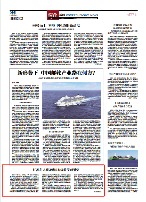 本報訊 7月24日,教育部公布了 《教育部關于批準2022年國家級教學成果獎獲獎項目的決定》。江蘇科技大學“產業伴生與企業嵌入:船海制造業信管專業人才培養模式重構”“船海類高校大學生‘1621’素質培養模式的構建與實踐”等2項成果喜獲高等教育(本科)國家級教學成果獎二等獎,江蘇科大作為第二完成單位參與的“現代造船工匠培養體系的創新與實踐”喜獲職業教育國家級教學成果獎二等獎,實現該校國家級教學成果獎歷史性突破。