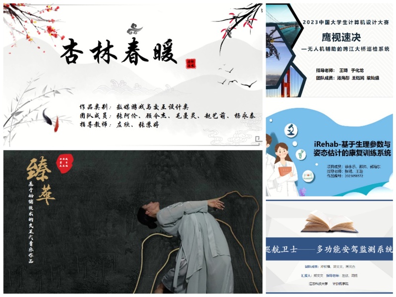 經(jīng)過各省賽區(qū)選拔,全國決賽吸引了500多所高校積極參賽。我校共有5支隊伍獲得全國賽一等獎:人工智能賽道中,由王琦、于化龍老師指導(dǎo),計算機學(xué)院湯海彤等同學(xué)創(chuàng)作的《鷹視速決-無人機輔助的跨江大橋巡檢系統(tǒng)》以及左欣、周揚老師指導(dǎo),計算機學(xué)院鄧全耀等同學(xué)創(chuàng)作的《巡航衛(wèi)士-多功能安駕監(jiān)測系統(tǒng)》;物聯(lián)網(wǎng)賽道中,由張明、王遜老師指導(dǎo),計算機學(xué)院徐永樂等同學(xué)創(chuàng)作的《iRehab-基于生理參數(shù)與姿態(tài)估計的康復(fù)訓(xùn)練系統(tǒng)》;數(shù)媒游戲與交互設(shè)計賽道中,由左欣、張?zhí)K婷老師指導(dǎo),計算機學(xué)院張阿倫等同學(xué)創(chuàng)作的《杏林春暖》;計算機音樂創(chuàng)作賽道中,由陸鑫、吳健康老師指導(dǎo),計算機學(xué)院田睿文等同學(xué)創(chuàng)作的《臻萃》,該作品也是我校首次在計算機音樂創(chuàng)作賽道取得突破。
