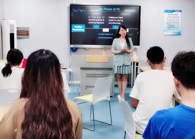 為推進大學英語教學改革,雷飛與大學外語二部老師們對2018級、2020級、2022級三屆學生連續三年展開問卷調查,通過數據分析精準了解學生需求,重構大學英語課程群——“必修課夯實語言基礎,公選課提升綜合能力”。隨后,她們面向全校學生開設了一系列公選課。《英語演講》通過系統訓練,幫助學生能夠用英文自信展示中華優秀傳統文化底蘊;《職場英語》通過職場主題的情景學習和操練,助力學生未來職業發展;《中國文化概論》指導學生用英語講述中國故事,樹立文化自信。