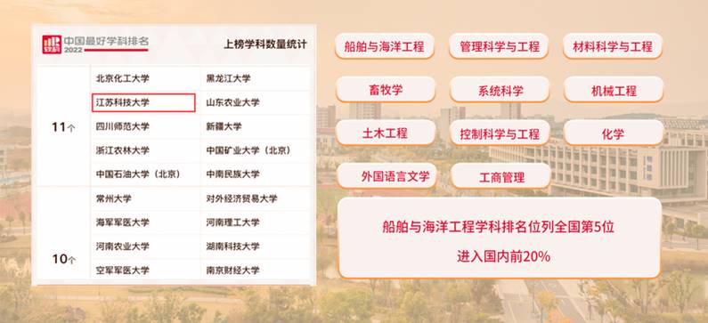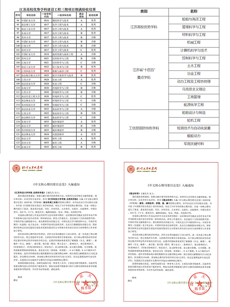第三期江蘇省優勢學科船舶與海洋工程以優秀成績通過驗收,9個學科成功入選江蘇省“十四五”重點學科。《江蘇科技大學學報(自然科學版)》《蠶業科學》入選北大中文核心期刊。