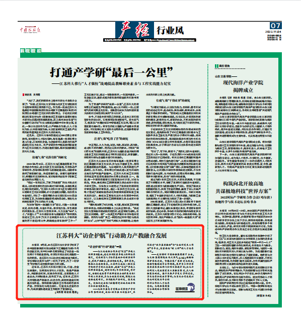中國船舶報《江蘇科大“訪企護航”行動助力產教融合發展》(2022年11月10日)