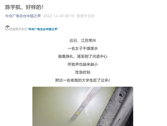 中央廣電總臺中國之聲《陳宇航,好樣的!》(2022年12月24日)