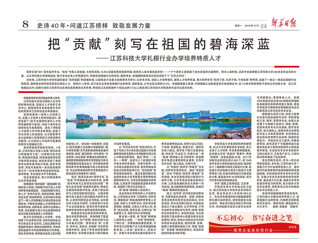 新華日報《把“貢獻”刻寫在祖國的碧海深藍——江蘇科技大學扎根行業辦學培養特質人才》