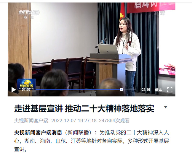 央視新聞《走進基層宣講 推動二十大精神落地落實》(2022年12月7日)