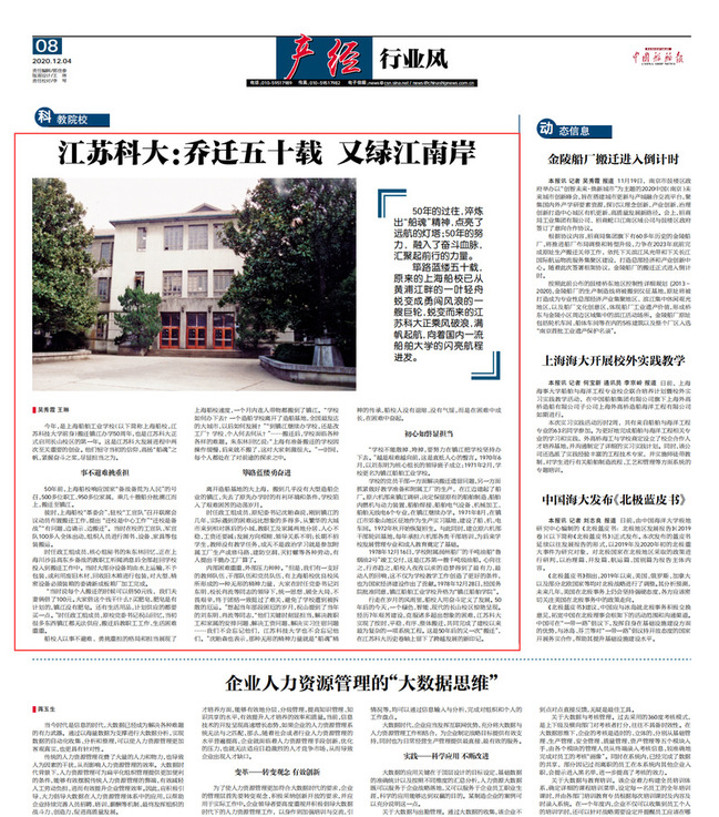 中國船舶報《江蘇科大:喬遷五十載 又綠江南岸》(2020年12月4日)