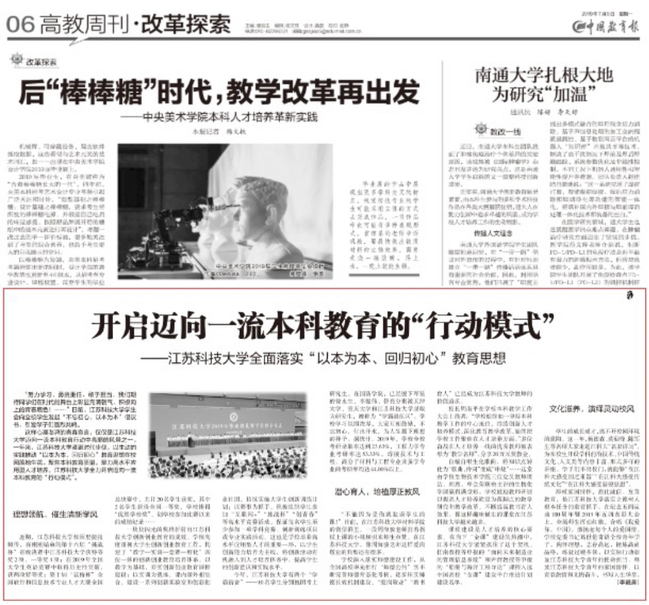 中國教育報《開啟邁向一流本科教育的“行動模式”——江蘇科技大學全面落實“以本為本、回歸初心”的教育思想》