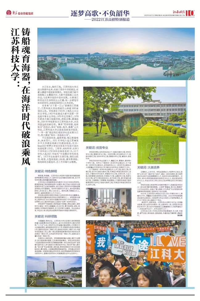 江南時報《江蘇科技大學:鑄船魂育海器,在海洋時代破浪乘風》(2022年6月27日)