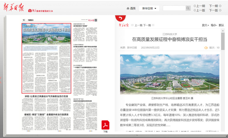 新華日報《江蘇科技大學堅持興船報國、鑄魂育人——在高水平大學建設中彰顯“深藍本色”》