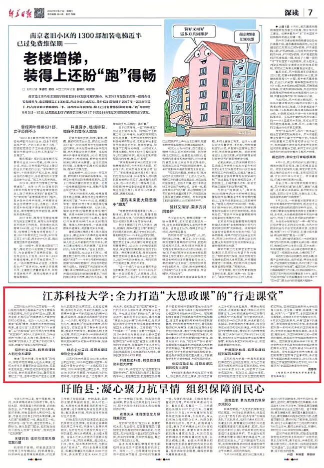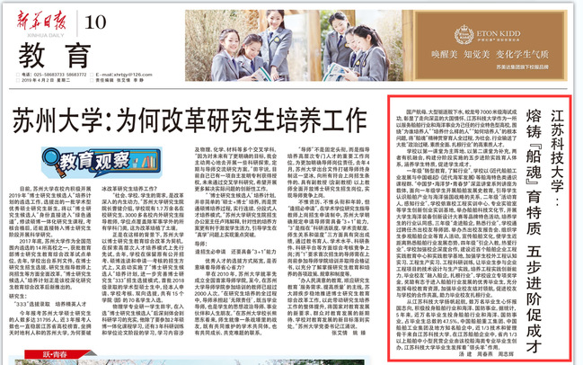 新華日報《江蘇科技大學:熔鑄“船魂”育特質 五步進階促成才》(2019年4月2日)